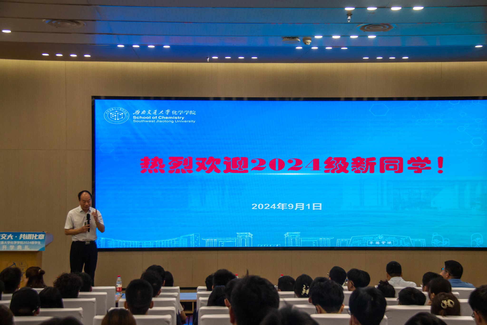 周祚万院长首先对2024级新生的到来表示热烈欢迎和由衷祝贺。周院长从“寻根化院发展历程、了解化院建设发展、分享大学学习建议”三方面,重点介绍了肉漫