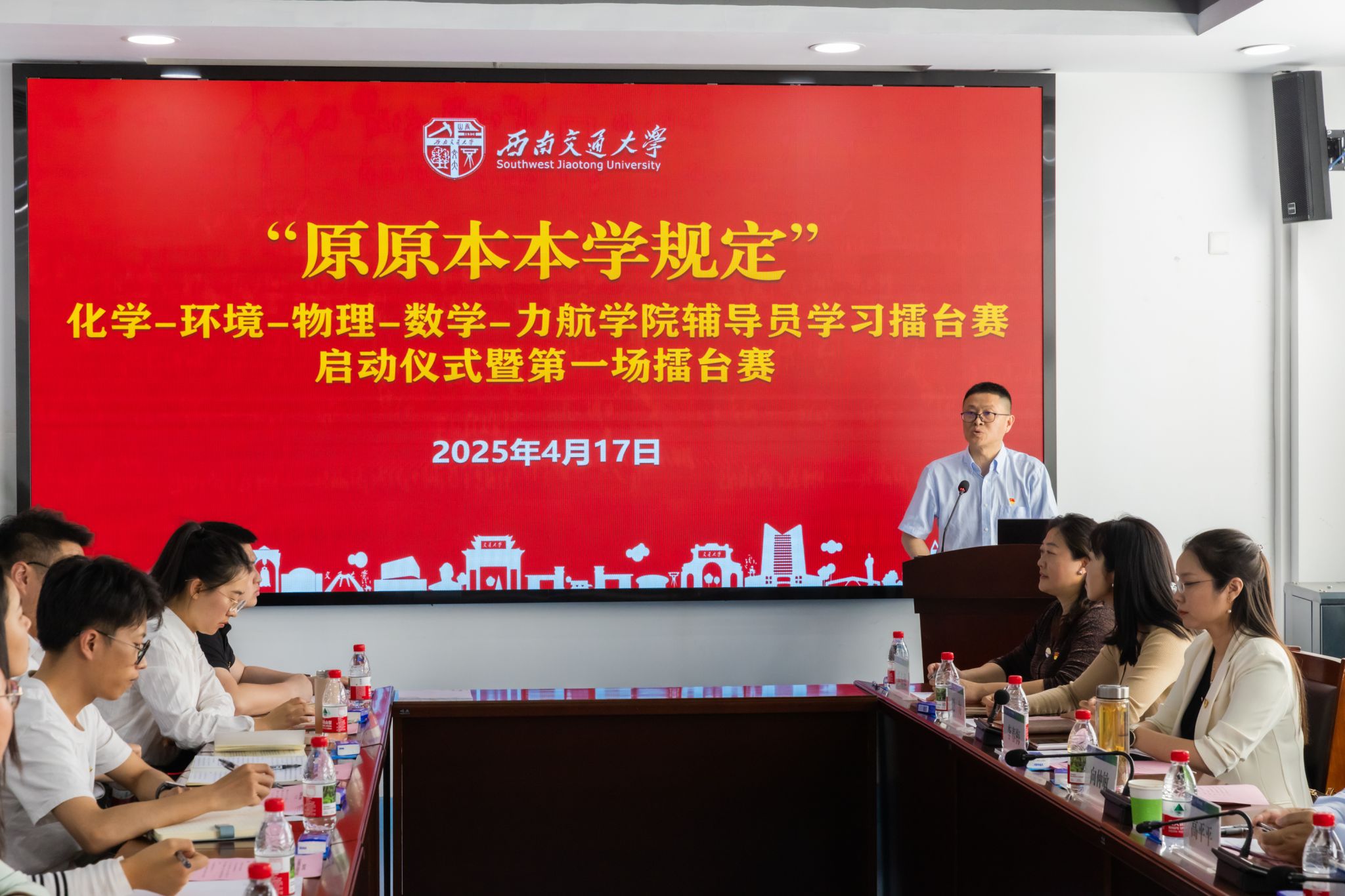 为扎实推进深入贯彻中央八项规定精神学习教育,认真学习领会习近平总书记关于加强党的作风建设的重要论述,锲而不舍落实中央八项规定精神,推进作风建设常态化长效化,4月17日下午,肉漫 、环境科学与工程肉漫 、物理科学与技术肉漫 、数学肉漫 、力学与航空航天肉漫 在九里校区联合举办“原原本本学规定”辅导员学习教育擂台赛。校党委副书记高平平出席活动。