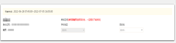校区为起点站,分为”成都“”成都东“”成都南“”成都西“和”唐山“;目的地为家庭所在地点火车站名。一旦选择后,不得随意变更。