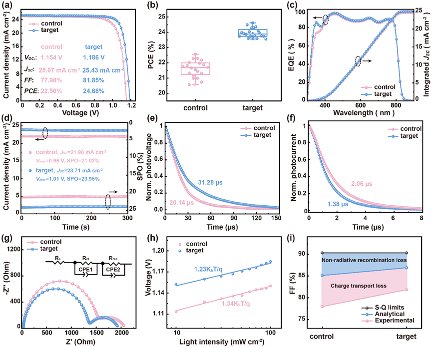 图5. 器件性能和载流子动力学。