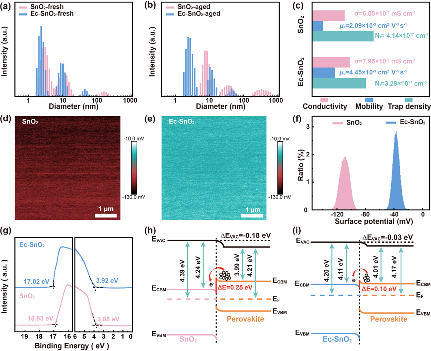 图1. Ec修饰对SnO2分散性及光电性能的影响。