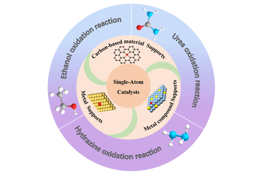 单原子催化剂 (SACs) 因其100%原子利用效率、明确的活性中心和可调载体而在电催化领域中受到广泛关注。然而,人们对SACs结构和性能之间关系的理解还存在许多不足之处,导致大多数SACs的合成仍然依赖于低效的试错实验,这阻碍了高性能SACs的高效合成。因此深入了解金属单原子与载体之间的相互作用,探究不同载体与金属单原子之间的界面效应,这对控制合成理想SACs催化剂、优化和改善催化性能至关重要。将 SACs 应用于具有高转化效率和高选择性的阳极析氧替代反应 (OER) 无疑具有广阔的前景。在这篇综述中,作者总结了不同载体SACs的合成及在界面处单原子与载体的相互作用,并以典型的阳极反应(乙醇、尿素、联氨)为切入点探讨了不同SACs底物分子的电氧化反应机理,为设计更加高效理想的阳极催化剂提供见解和思路。最后, 还讨论了该领域当前面临的挑战和未来发展机遇。