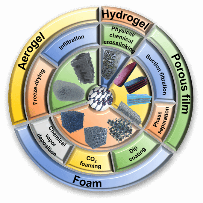 图1. 石墨烯/聚合物基多孔EMI屏蔽材料结构设计策略概述示意图。