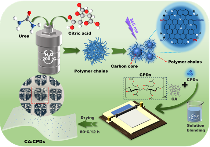 图1. CPDs 和 CA/CPDs 复合薄膜的制备过程示意图。