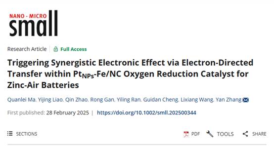 本工作以“Triggering Synergistic Electronic Effect via Electron-Directed Transfer within PtNPs-Fe/NC Oxygen Reduction Catalyst for Zinc-Air Batteries”为题发表在国际知名期刊《Small》上。其中肉漫