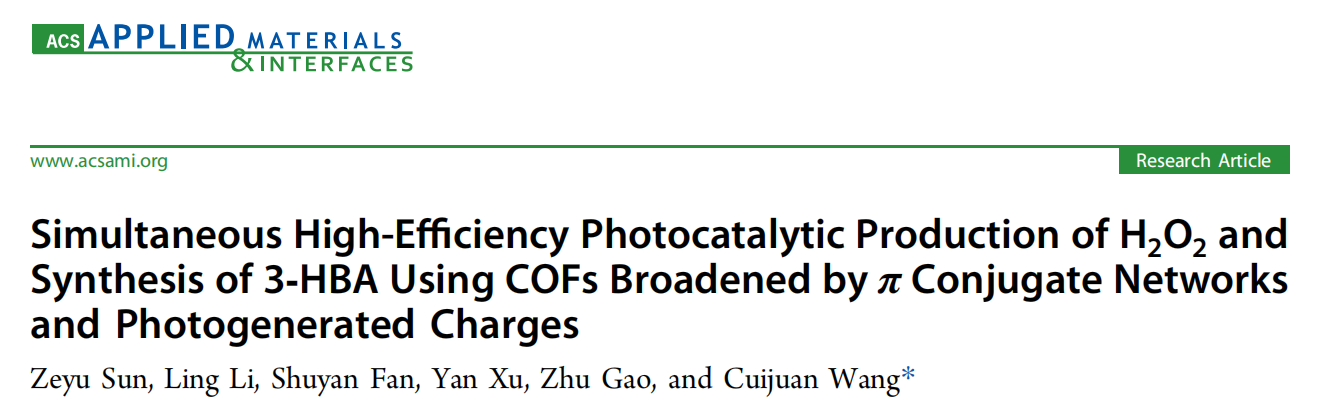 该论文以“Simultaneous High-Efficiency Photocatalytic Production of H₂O₂ and Synthesis of 3-HBA Using COFs broadened by π conjugate network and Photo-Generated Charges”为题发表在材料类国际顶级期刊《ACS Applied Materials & Interfaces》(影响因子:8.3)。其中,肉漫
