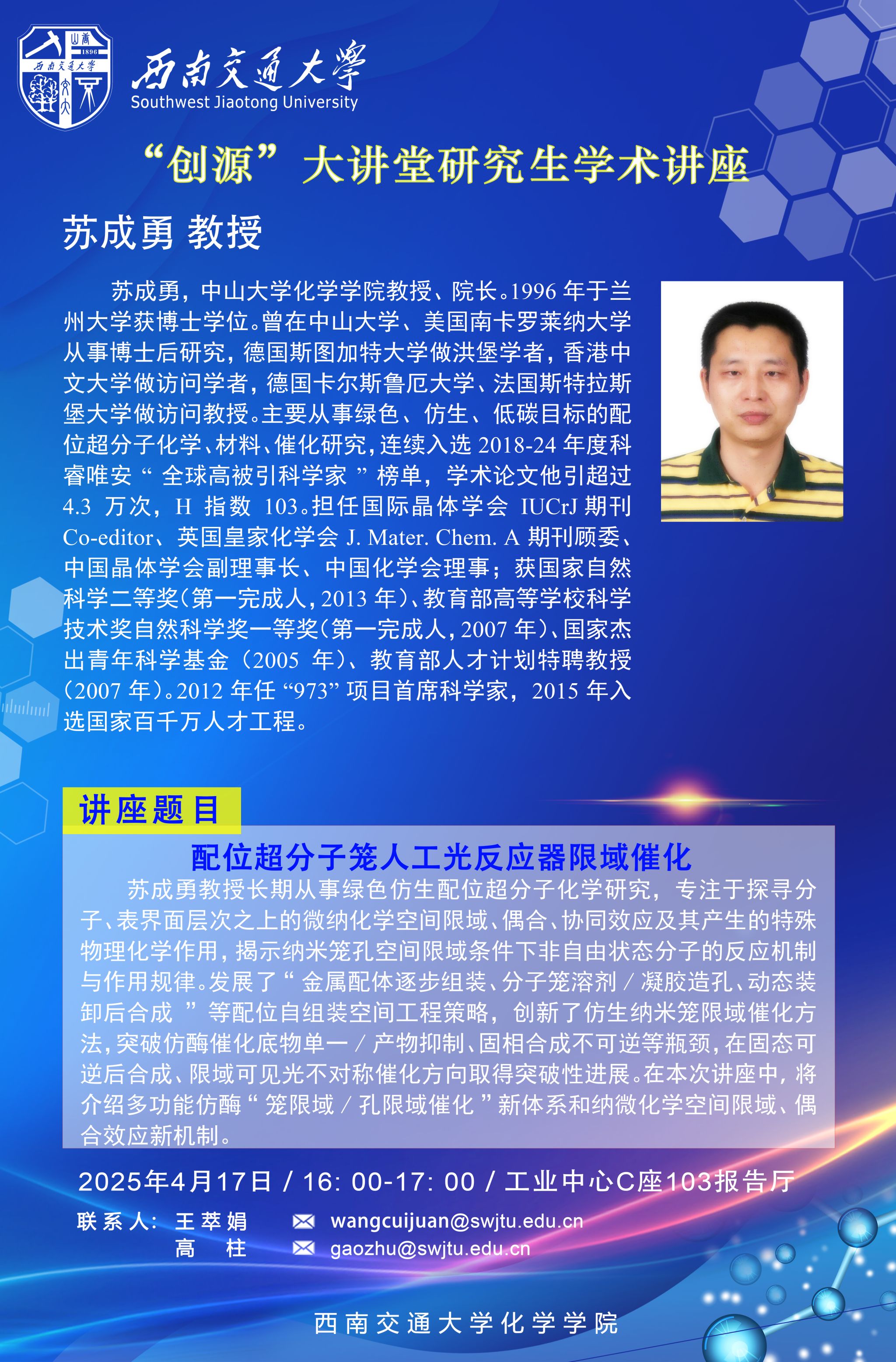 肉漫 “创源”大讲堂学术讲座:《配位超分子笼人工光反应器限域催化》