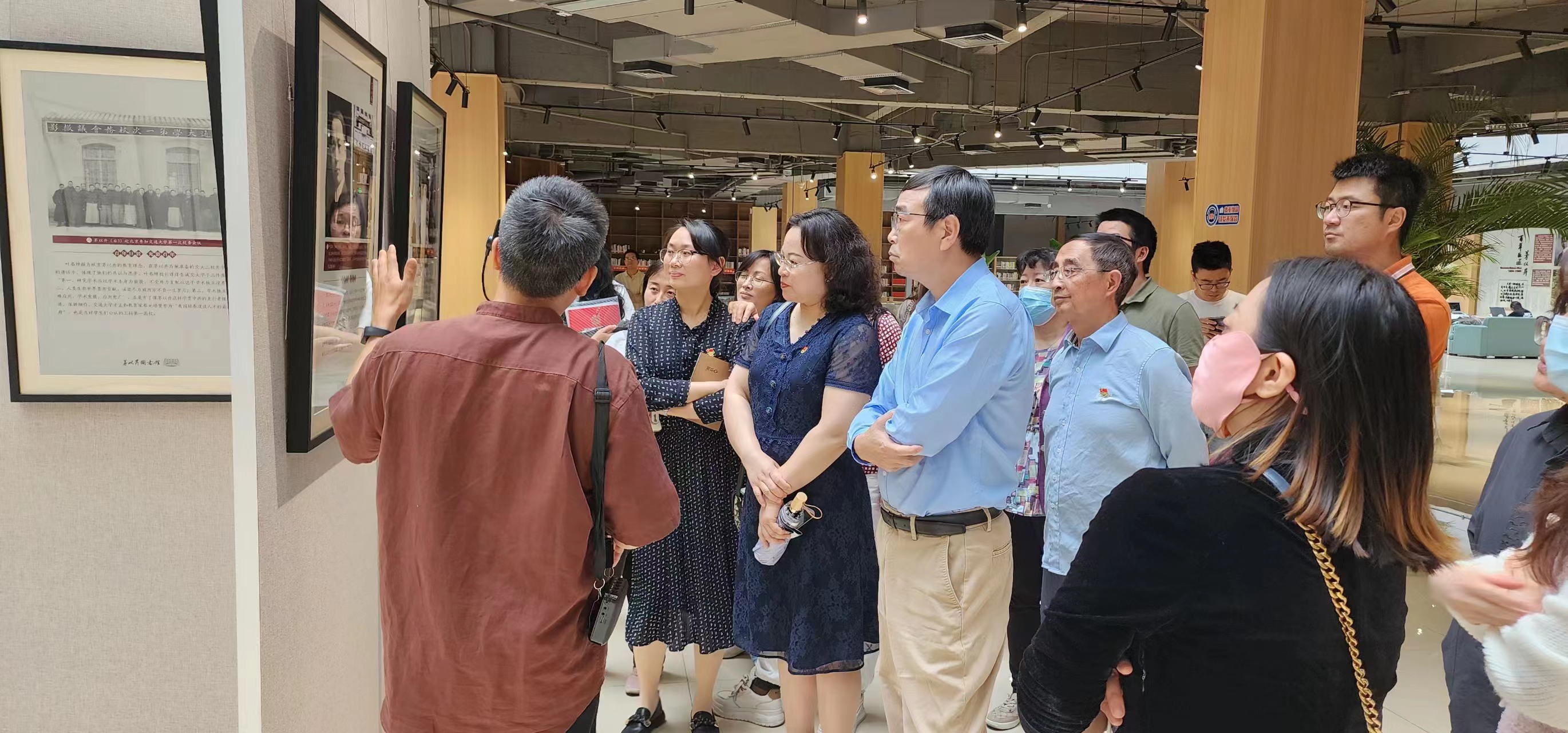 党员同志们认真聆听了图书馆副研究馆员、校史专家杨永琪老师对《茅以升:百年巨匠,光影百年》主题展的细致深入专业的讲解。本次展览运用贯穿茅老人生历程的80个场景,以珍贵历史影像配文的呈现方式,生动地再现了茅老波澜壮阔的人生历程,分为《成长》、《师者》、《科工》与《新生》四个篇章,充分诠释了“爱国、科学、奋斗、奉献”的茅老精神内涵。