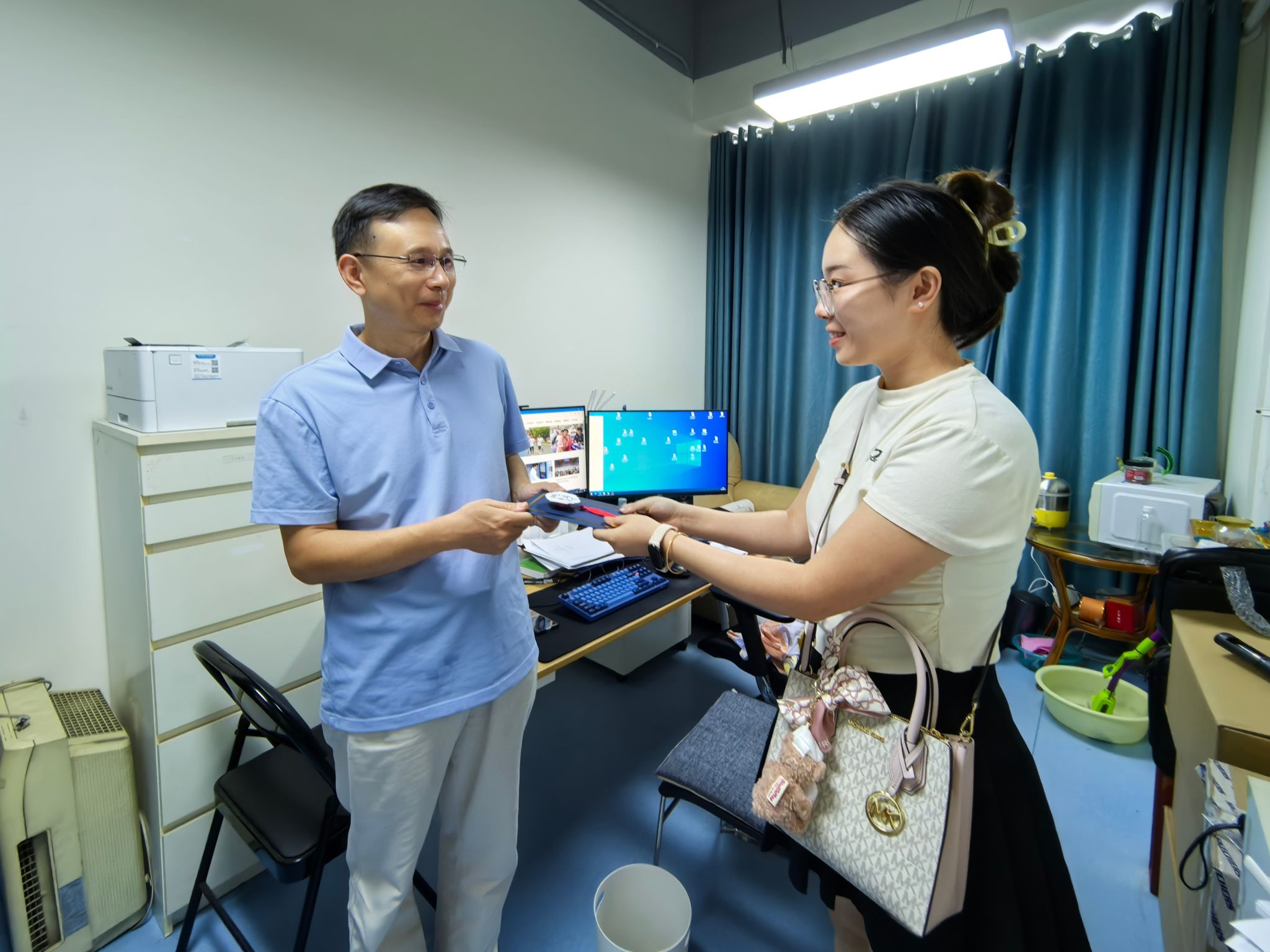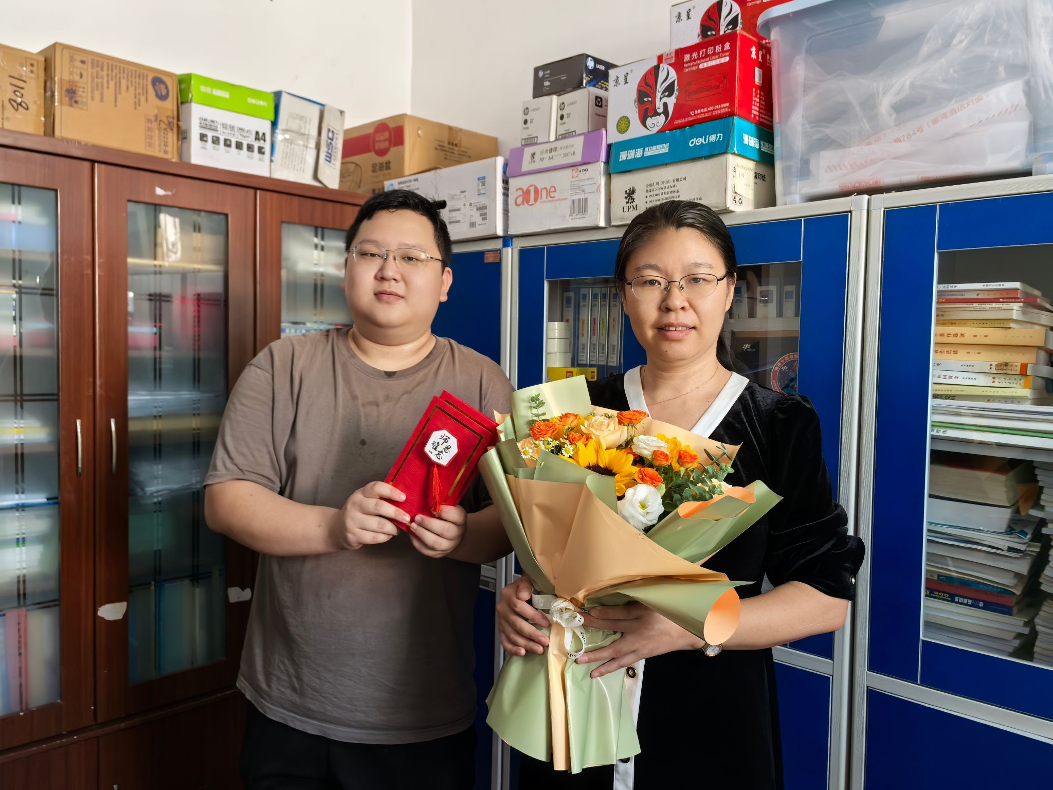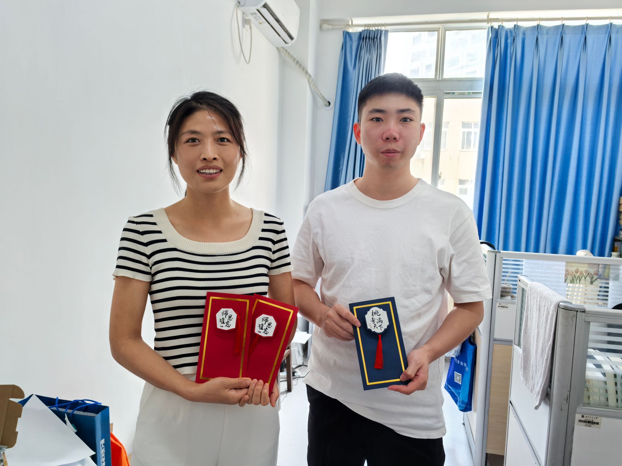 组织员和党员服务队充当“祝福快递”,将卡片送至对应老师手中。各位老师收到贺卡都表现出欣慰和开心之情,师生情谊也在一张张卡片中传递。