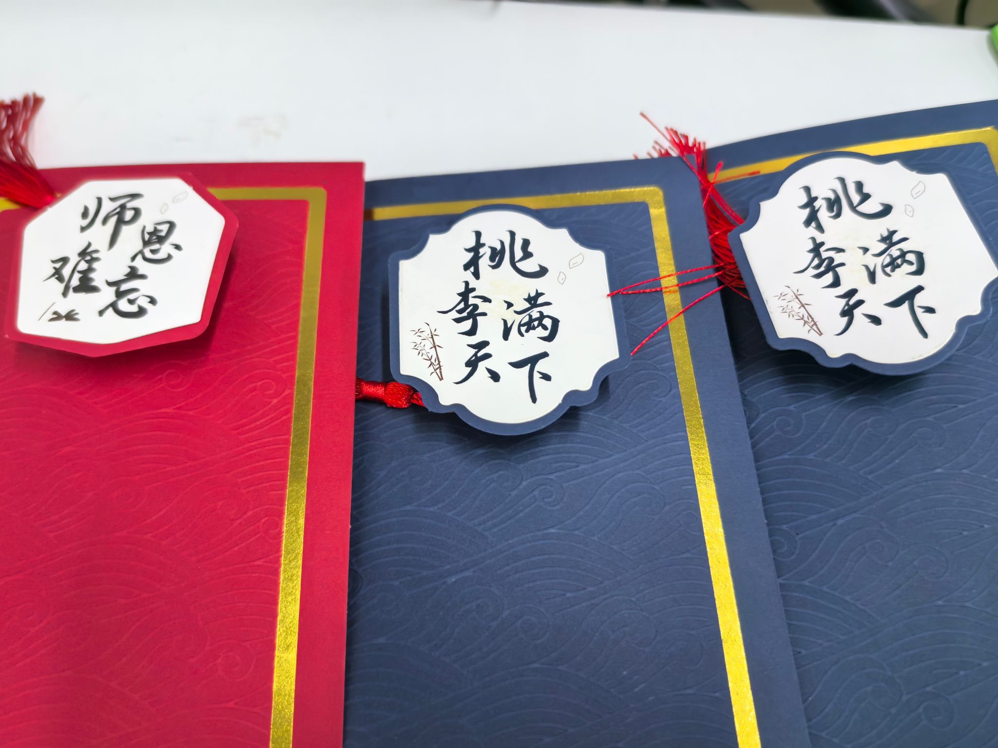 共有百余位同学积极踊跃为自己敬爱的老师书写贺卡,画图、古文、温馨的话语,都满含了对老师的祝福。