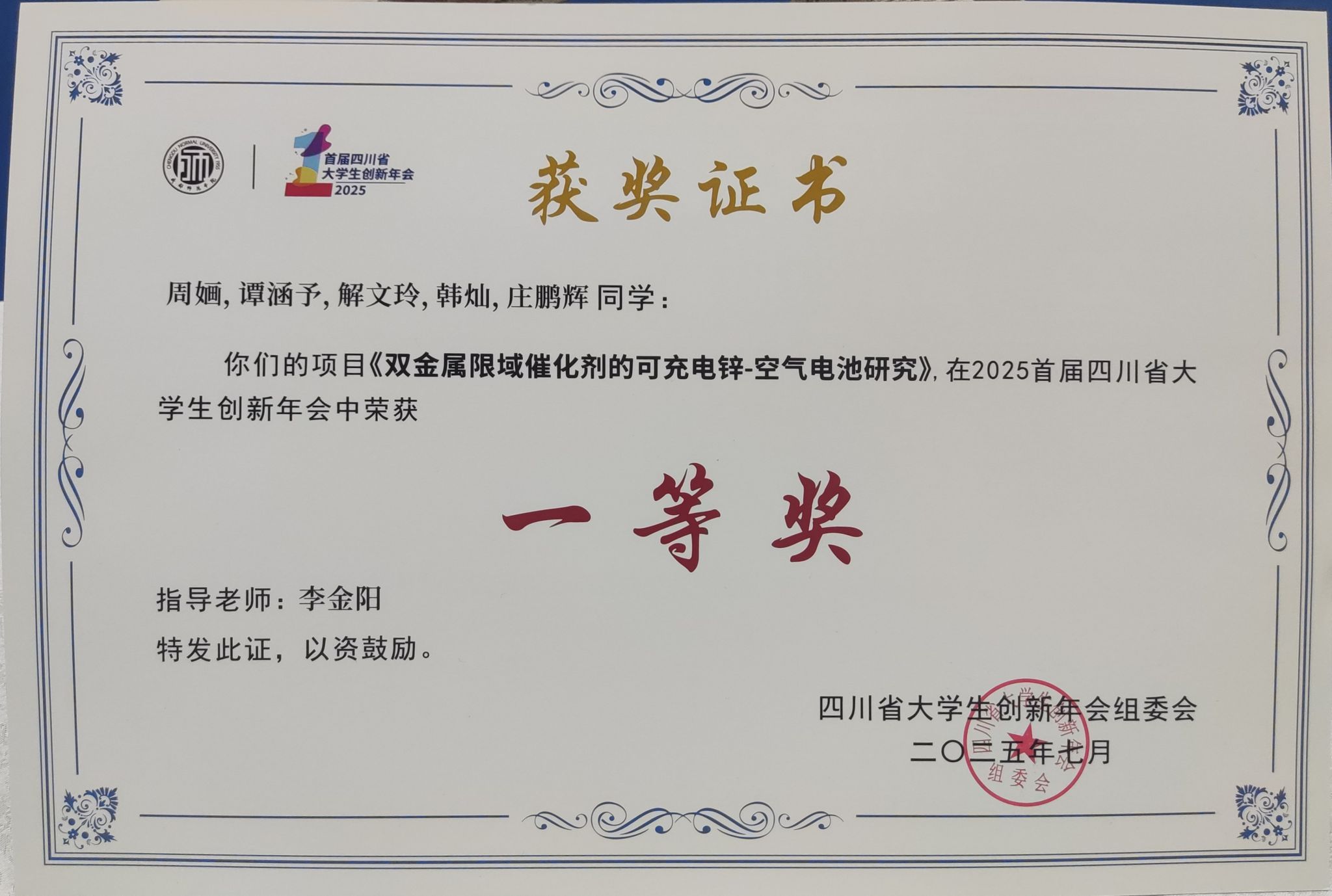 李金阳老师带领团队巧妙利用稀土金属和过渡金属的协同作用,通过深入研究和反复实验,成功开发出双金属限域催化剂,有效解决了关键技术难题,不仅提高了电池性能,还有望助力四川稀土产业的进一步发展。