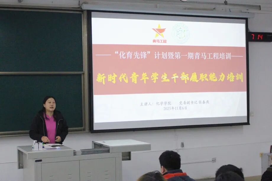 党委副书记、青年讲师团成员张春燕以“理论高度+实践温度”为核心,为学员们讲授了一堂立意深远、内涵丰富的思政课。她从学生干部的角色定位、能力提升与成长规划三个维度,系统阐释了新时代青年践行马克思主义的核心要义,引导学员们深刻认识到“青马学员”不仅是一份荣誉,更是一份责任。她鼓励大家将个人专业理想融入国家科技发展大局,在化学科研与服务奉献中锤炼品德修为、练就过硬本领,努力成长为“有理想、敢担当、能吃苦、肯奋斗”的新时代青年马克思主义者,为实现中华民族伟大复兴的中国梦贡献青春智慧。