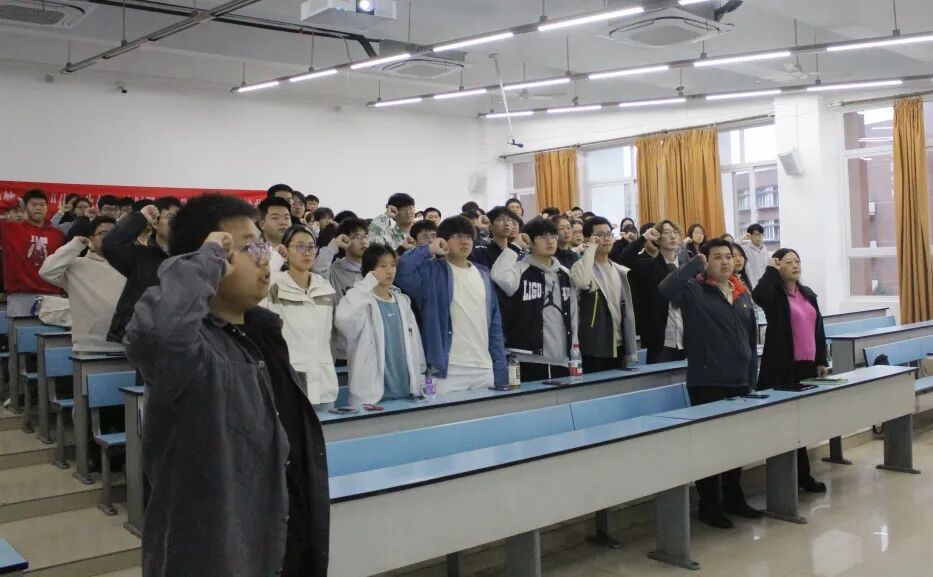 仪式尾声,在高分子2025-01班团支部书记孙艺泉的领誓下,全体学员重温入团誓词,进一步强化学员们的身份认同与责任意识,凝聚起“听党话、跟党走”的思想共识。