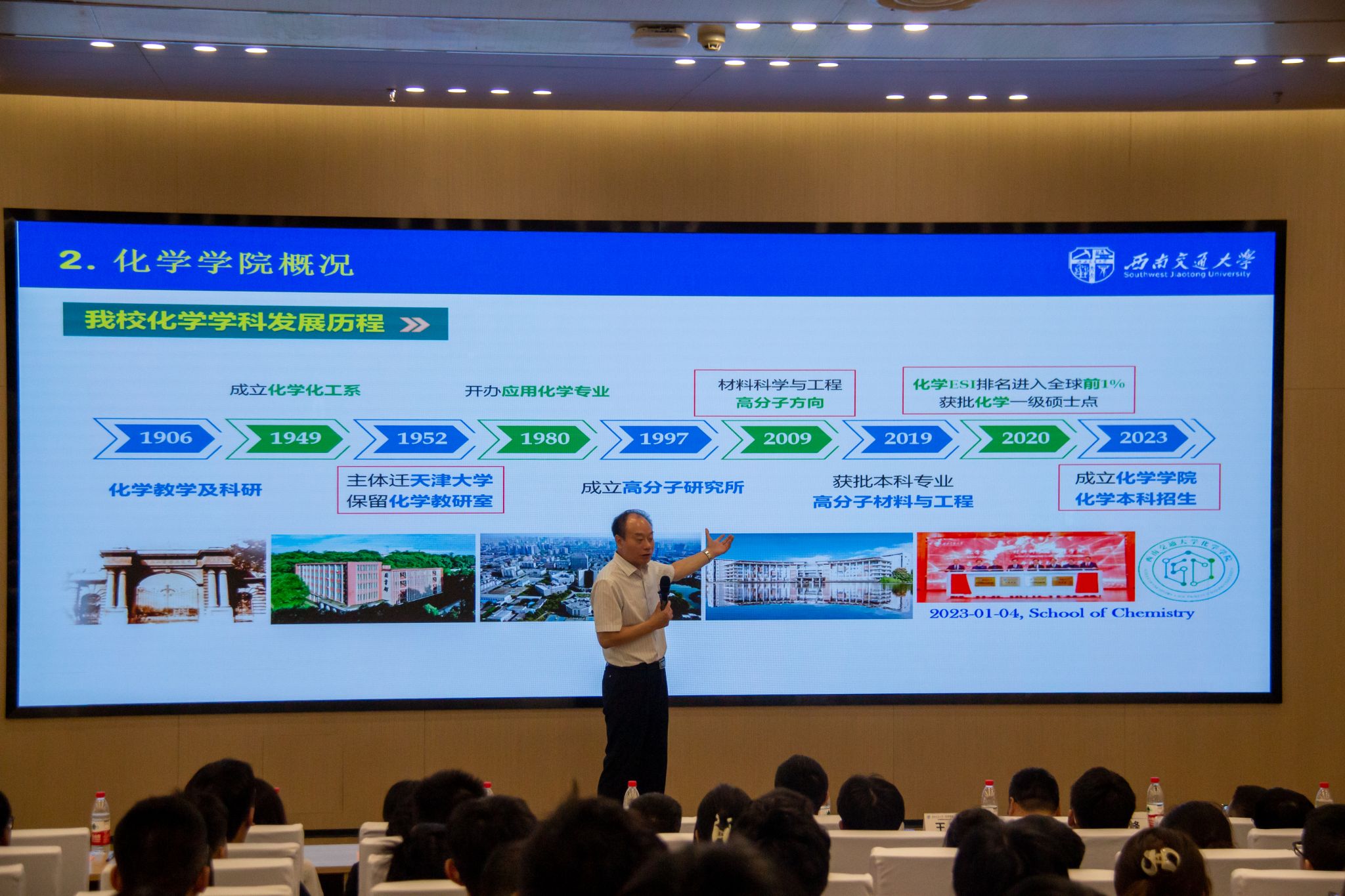 周祚万院长首先对2024级新生的到来表示热烈欢迎和由衷祝贺。周院长从“寻根化院发展历程、了解化院建设发展、分享大学学习建议”三方面,重点介绍了肉漫 的学科特色、学术研究、科创平台、师资力量,以及肉漫 化学学科在各个领域中取得的成果及作出的贡献。在最后,周院长用“融入、享受、实现、尝试、体验”等五个关键词,为新生们带来了一堂生动且具有化学特色的“思政课”,最后,周院长对同学们大学生活的发展与规划提出了建议,期待同学们书写出自己的青春华章。